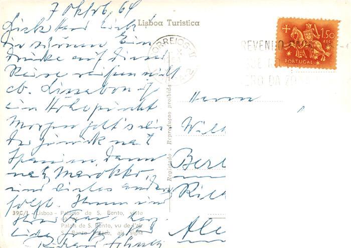 old postcard Lisboa Lisbon Lissabon PT Palacio de S. Bento postalisch gelaufen Fliegeraufnahme Erhaltung siehe scans [FriedD77]