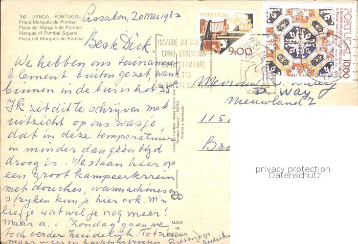 old postcard Lisboa Plaza del Marques de Pombal postalisch gelaufen Erhaltung siehe scans