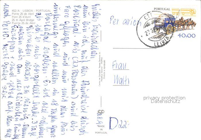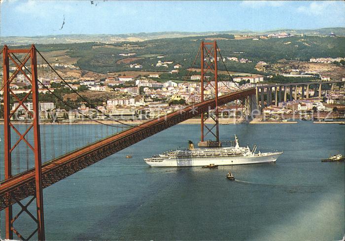 old postcard Lisboa Ponte 25 de Abril Faehre Passagierschiff postalisch gelaufen Erhaltung siehe scans
