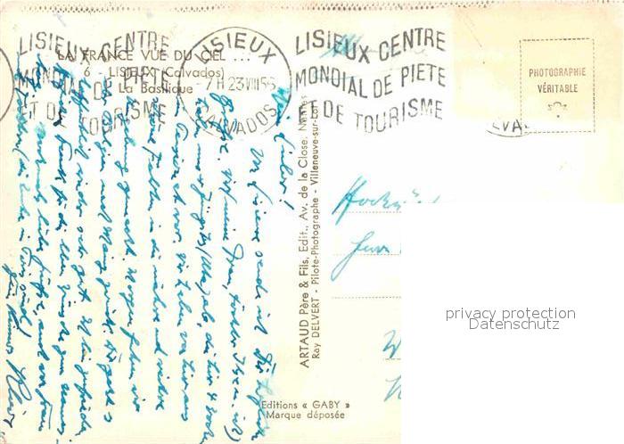 12692650 carte postale Lisieux Basilique Fliegeraufnahme postalisch gelaufen Erhaltung siehe scans [NatalD47] KatCode: 11170014314366