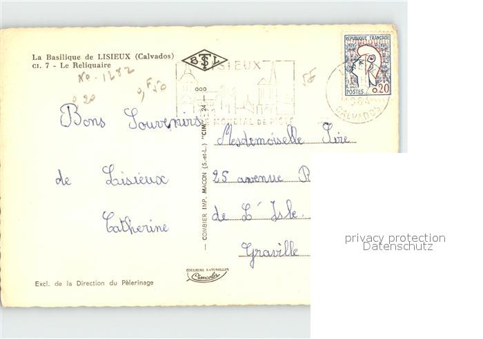 12256694 carte postale Lisieux Basilique Le Reliquaire postalisch gelaufen Erhaltung siehe scans KatCode: 11170014314366