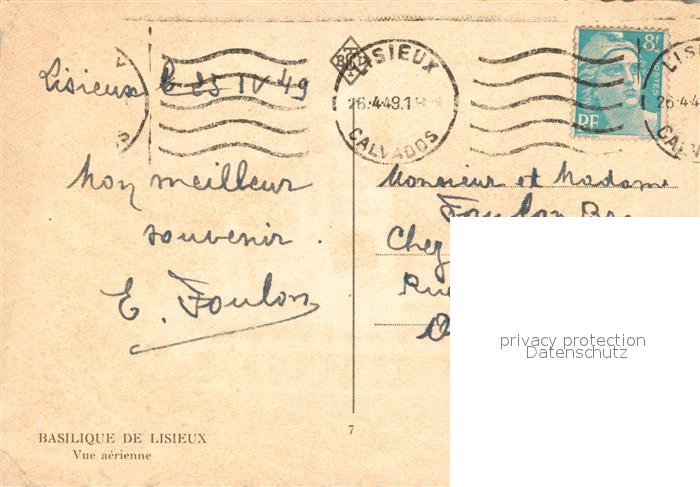13224346 carte postale Lisieux Basilique vue aérienne Basilika Kuenstlerkarte postalisch gelaufen Erhaltung siehe scans [FriedD77] KatCode: 11170014314366