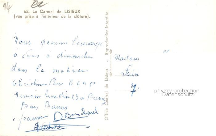 13545282 Lisieux Carmel postalisch nicht gelaufen Erhaltung siehe scans [KathaD81] KatCode: 11170014314366