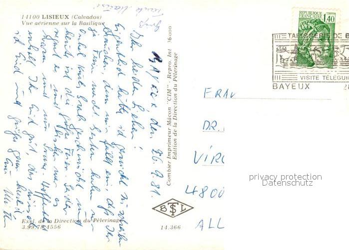 13090631 carte postale Lisieux Fliegeraufnahme postalisch gelaufen Erhaltung siehe scans [KathaD81] KatCode: 11170014314366