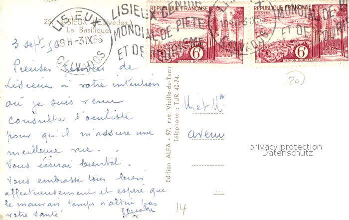 13494342 carte postale Lisieux La Basilique postalisch gelaufen Erhaltung siehe scans [WerneD78] KatCode: 11170014314366