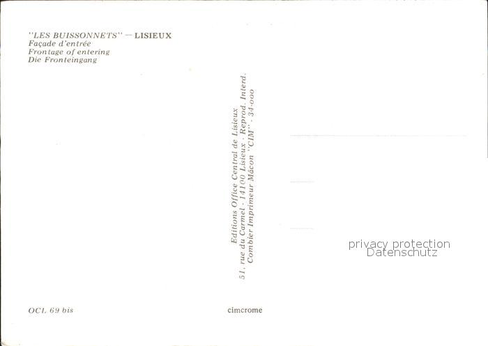 12501161 Lisieux Les Buissonnets postalisch nicht gelaufen Erhaltung siehe scans KatCode: 11170014314366