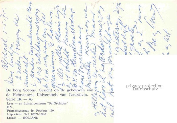 74092110 Lisse Zuid-Holland NL Hebreeuwse Universiteit von Jeruzalem postalisch nicht gelaufen Erhaltung siehe scans [IrynaD87] KatCode: 11371500