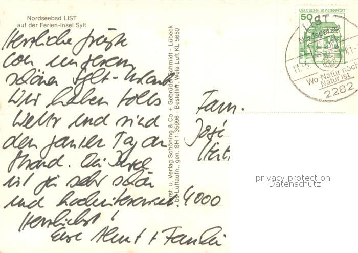 73617011 alte Postkarte List Sylt Fliegeraufnahme postalisch gelaufen Erhaltung siehe scans [WerneD78] KatCode: 11110001054078