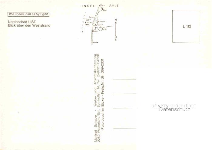 72856875 List Sylt Fliegeraufnahme Weststrand postalisch nicht gelaufen Erhaltung siehe scans [AndreD76] KatCode: 11110001054078