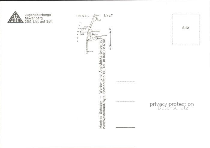 72042018 List Sylt Jugendherberge Moevenberg postalisch nicht gelaufen Erhaltung siehe scans KatCode: 11110001054078