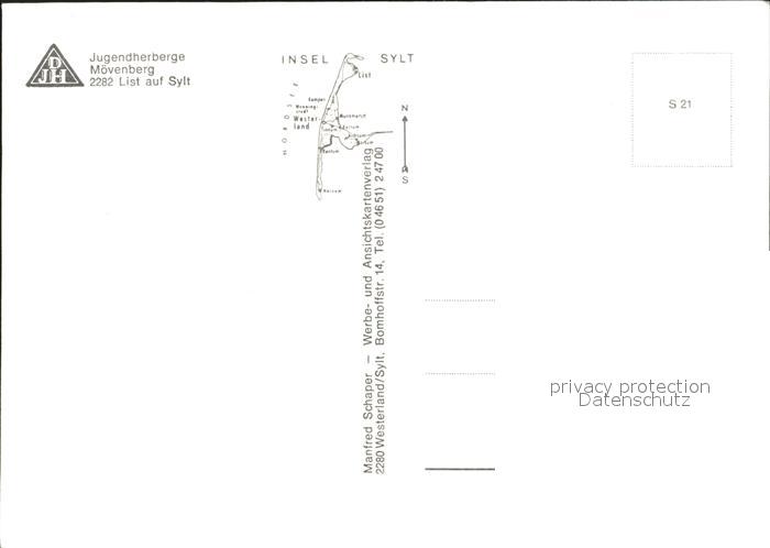 72042017 List Sylt Jugendherberge Moevenberg postalisch nicht gelaufen Alte Ansichtskarte Postkarte Nata Katcode 11110001054078