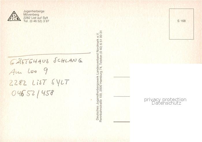 73263767 List Sylt Jugendherberge Moevenberg postalisch nicht gelaufen Erhaltung siehe scans [WerneD78] KatCode: 11110001054078