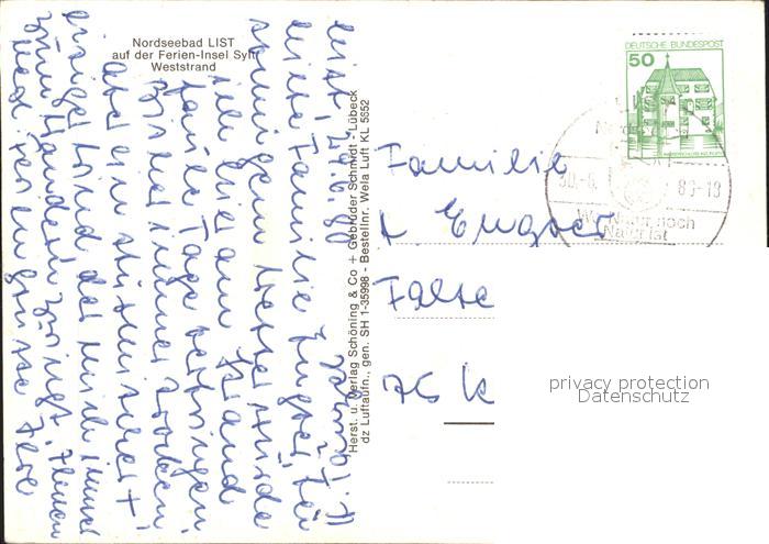 72036869 alte Postkarte List Sylt Nordseebad Weststrand Fliegeraufnahme postalisch gelaufen Erhaltung siehe scans KatCode: 11110001054078