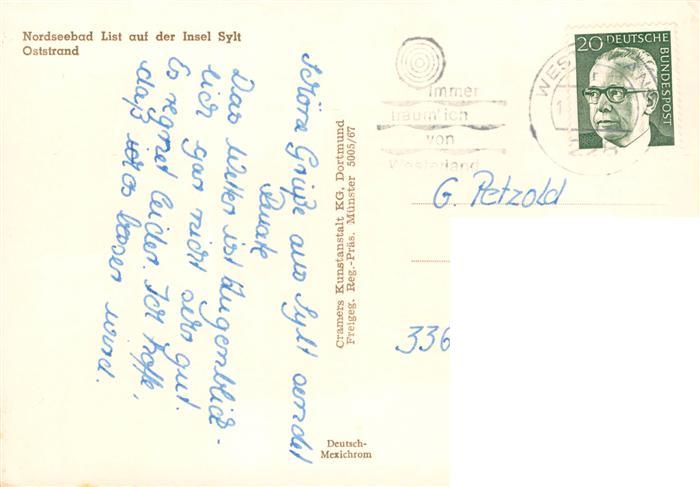 73924634 alte Postkarte List Sylt Oststrand Fliegeraufnahme postalisch gelaufen Erhaltung siehe scans [FriedD77] KatCode: 11110001054078