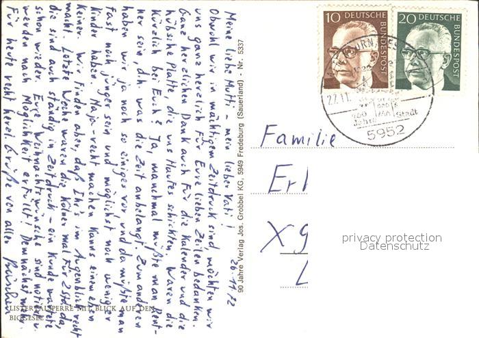 72306467 alte Postkarte Listertalsperre mit Blick auf den Biggesee postalisch gelaufen Erhaltung siehe scans KatCode: 11110005966004