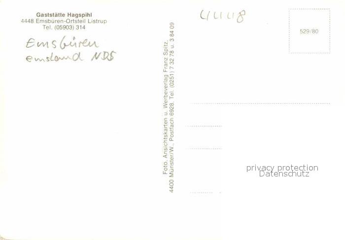 32838951 Listrup Gaststaette Hagspihl Ehrenmal Jugendheim Emswehr Kirche postalisch nicht gelaufen Erhaltung siehe scans [KathaD81] KatCode: 11110003454010