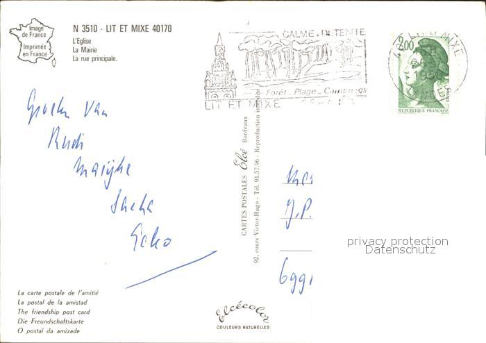 12272936 carte postale Lit-et-Mixe Eglise Mairie rue principale postalisch gelaufen Erhaltung siehe scans KatCode: 11170040140157