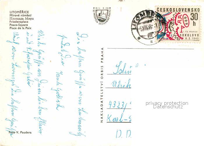 old postcard Litomerice Leitmeritz Nordboehmen Mirove namesti Friedensplatz Kirche postalisch gelaufen Erhaltung siehe scans [FriedD77]