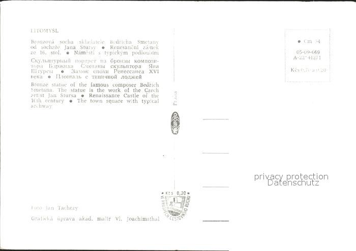 Litomysl Bedrich Smetana Schloss postalisch nicht gelaufen Erhaltung siehe scans