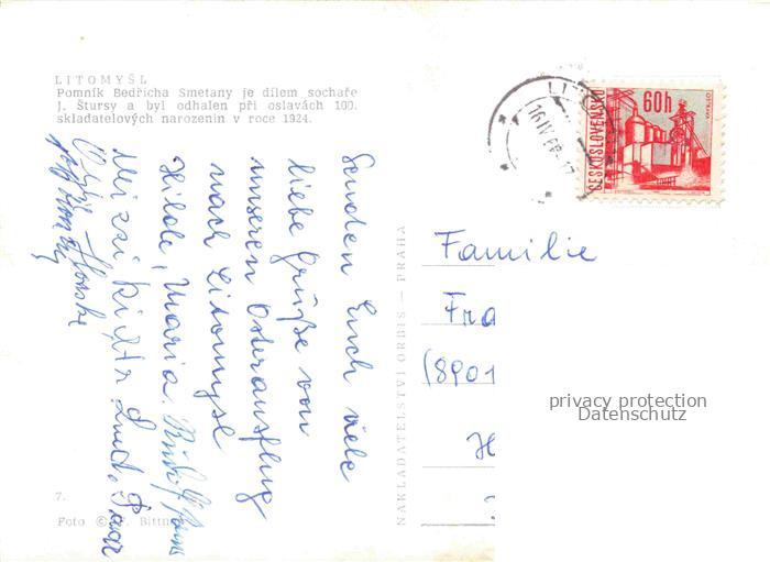 74136895 old postcard Litomysl Leitomischl CZ Pomnik Bedricha Smetany postalisch gelaufen Erhaltung siehe scans [WerneD78] KatCode: 11520