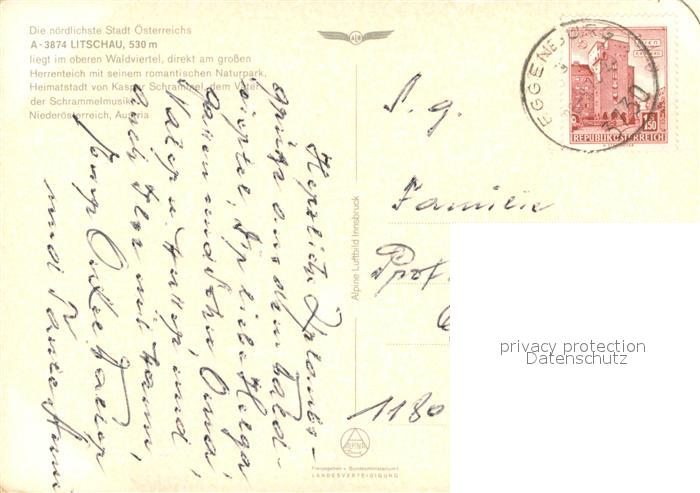 73630044 alte Postkarte Litschau Fliegeraufnahme postalisch gelaufen Erhaltung siehe scans [WerneD78] KatCode: 11390124030925