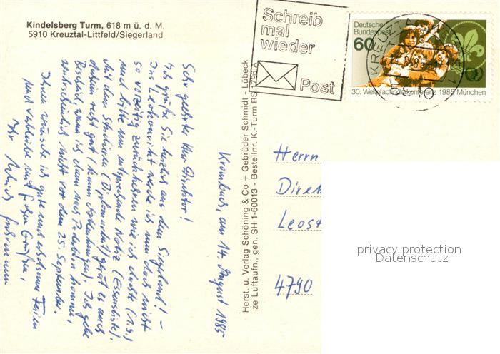 73090413 alte Postkarte Littfeld Westfalen Fliegeraufnahme Kindelsberg Turm postalisch gelaufen Erhaltung siehe scans [NatalD47] KatCode: 11110005970024