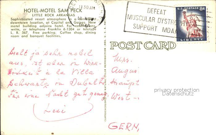 72486850 old postcard Little Rock Arkansas Hotel Motel Sam Peck postalisch gelaufen Erhaltung siehe scans KatCode: 14140040000000