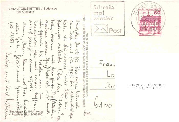 72793596 alte Postkarte Litzelstetten Bodensee Insel Mainau Fliegeraufnahme postalisch gelaufen Erhaltung siehe scans [FriedD77] KatCode: 11110008335043