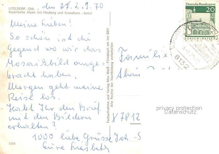 72991521 alte Postkarte Litzldorf mit Heuberg Kranzhorn Inntal postalisch gelaufen Erhaltung siehe scans [LiesaD40] KatCode: 11110009187129