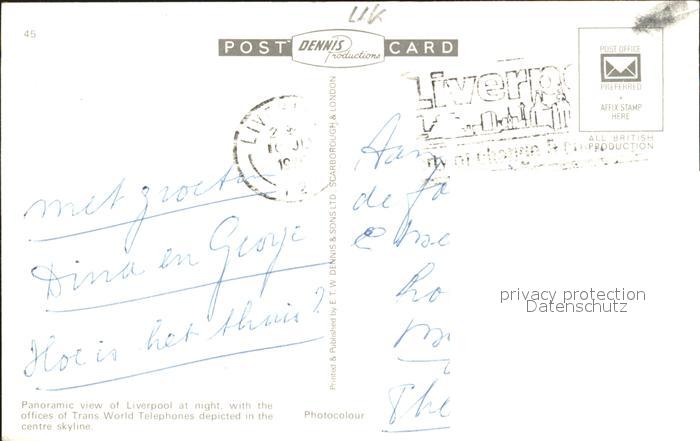 old postcard Liverpool by night postalisch gelaufen Erhaltung siehe scans