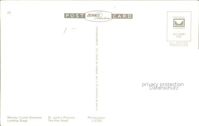 Liverpool Mersey Tunnel Entrance Landing Stage St Johns Precinct The Pier Head postalisch nicht gelaufen Erhaltung siehe scans