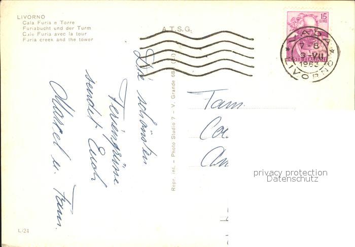old postcard Livorno Furiabucht Turm postalisch gelaufen Erhaltung siehe scans
