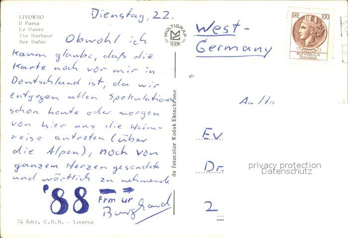 old postcard Livorno Hafen postalisch gelaufen Erhaltung siehe scans