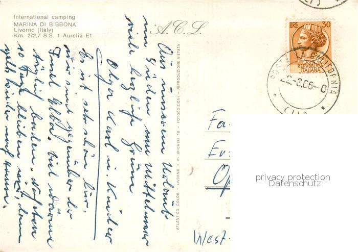 old postcard Livorno IT Marina di Bibbona International Camping Details postalisch gelaufen Erhaltung siehe scans [WerneD78]