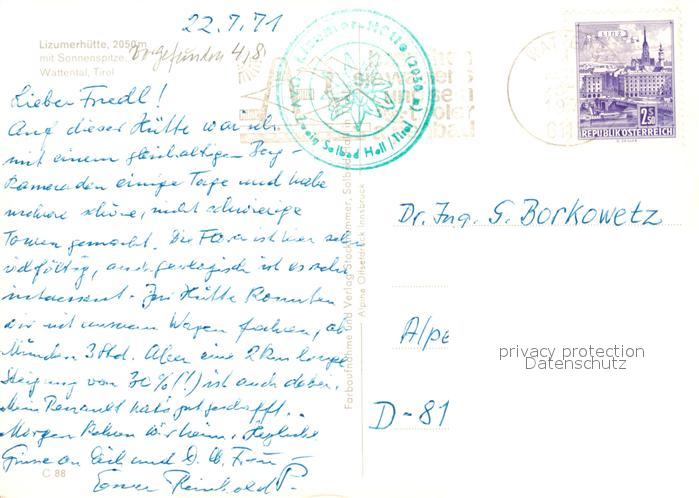 73099369 alte Postkarte Lizumerhuette mit Sonnenspitze Wattental postalisch gelaufen Erhaltung siehe scans [WerneD78] KatCode: 11390332070354