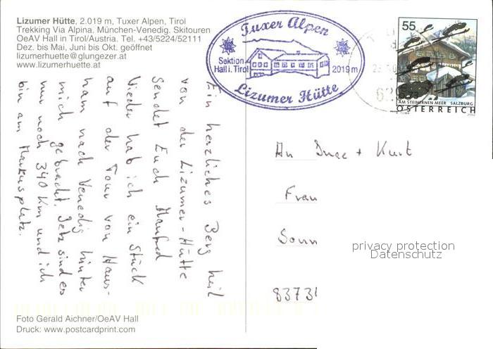 71920929 alte Postkarte Lizumerhuette mit Tuxer Alpen postalisch gelaufen Erhaltung siehe scans KatCode: 11390332070354