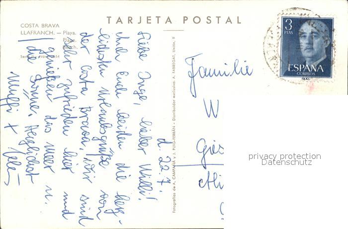 old postcard Llafranc Costa Brava Strand postalisch gelaufen Erhaltung siehe scans