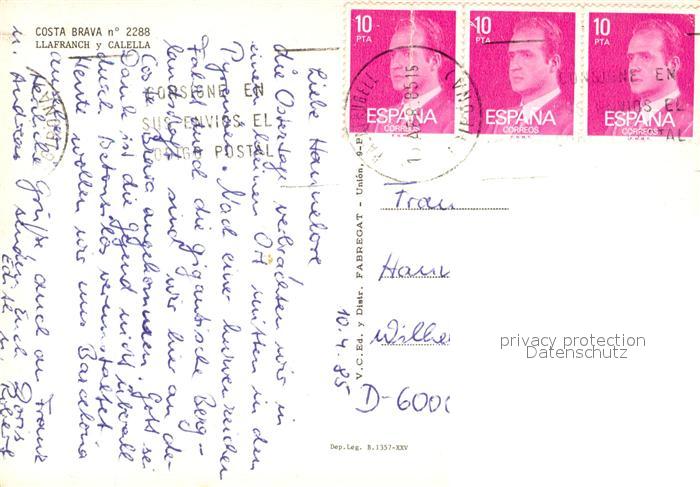old postcard Llafranc y Calella Panorama postalisch gelaufen Erhaltung siehe scans [FriedD77]
