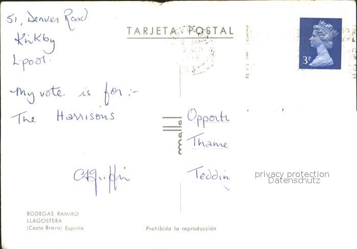 old postcard Llagostera Bodegas Ramiro postalisch gelaufen Erhaltung siehe scans