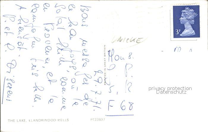 old postcard Llandrindod Wells Lake postalisch gelaufen Erhaltung siehe scans