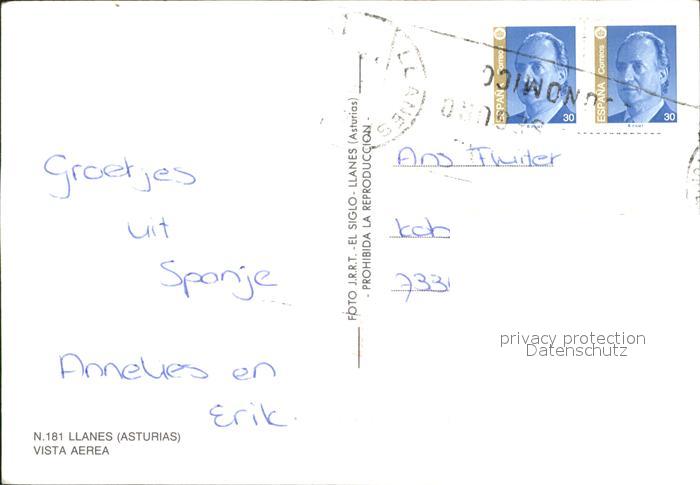 old postcard Llanes Fliegeraufnahme postalisch gelaufen Erhaltung siehe scans
