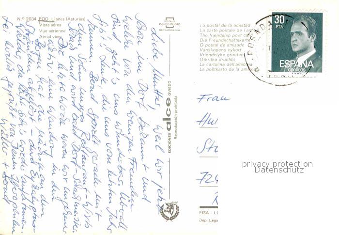old postcard Llanes Strand Luftaufnahme postalisch gelaufen Erhaltung siehe scans [KathaD79]