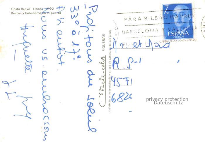 74035109 old postcard Llansa Costa Brava ES Barcas y balandros en el puerto postalisch gelaufen Erhaltung siehe scans [FriedD77] KatCode: 11510