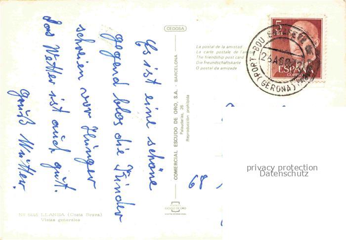 74031842 old postcard Llansa Costa Brava ES Kuestenpanorama Landkarte postalisch gelaufen Erhaltung siehe scans [FriedD77] KatCode: 11510