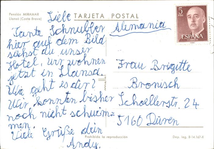 old postcard LLansa Pension Miramar Playa postalisch gelaufen Erhaltung siehe scans