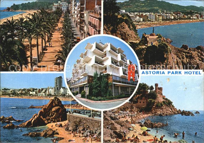 old postcard Lloret de Mar Astoria Park Hotel Promenade Burg Strand postalisch gelaufen Erhaltung siehe scans