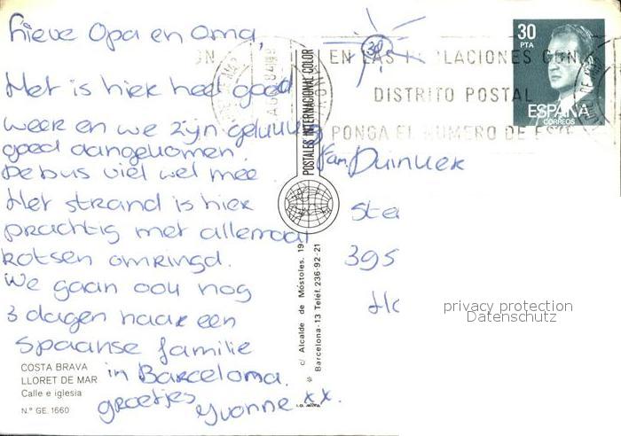 old postcard Lloret de Mar Calle iglesia postalisch gelaufen Erhaltung siehe scans