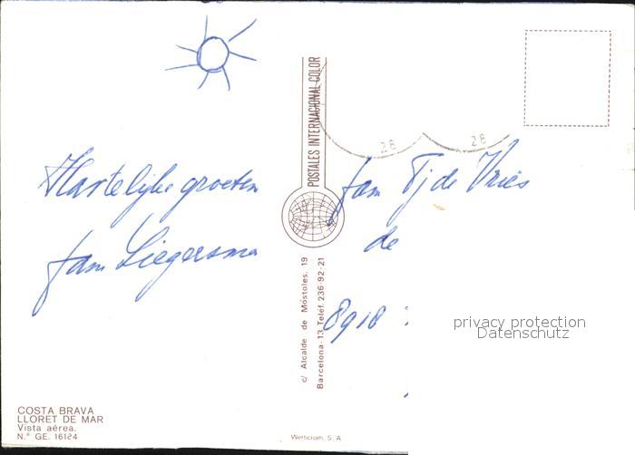 old postcard Lloret de Mar Fliegeraufnahme postalisch gelaufen Erhaltung siehe scans