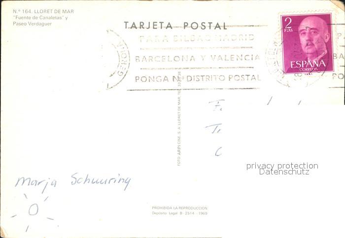 old postcard Lloret de Mar Fuente de Canaletas postalisch gelaufen Erhaltung siehe scans