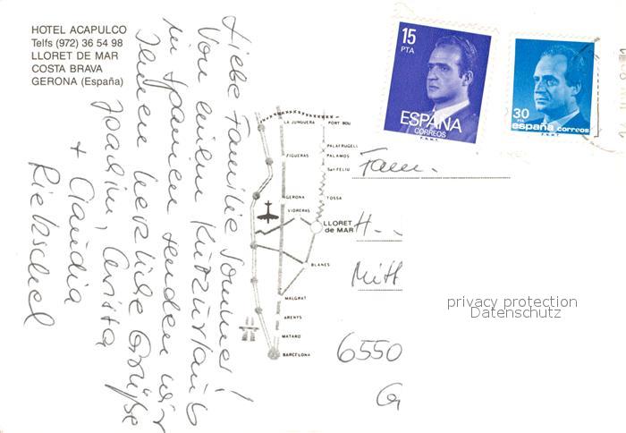 old postcard Lloret de Mar Hotel Acapulco Costa Brava postalisch gelaufen Erhaltung siehe scans [LiesaD40]